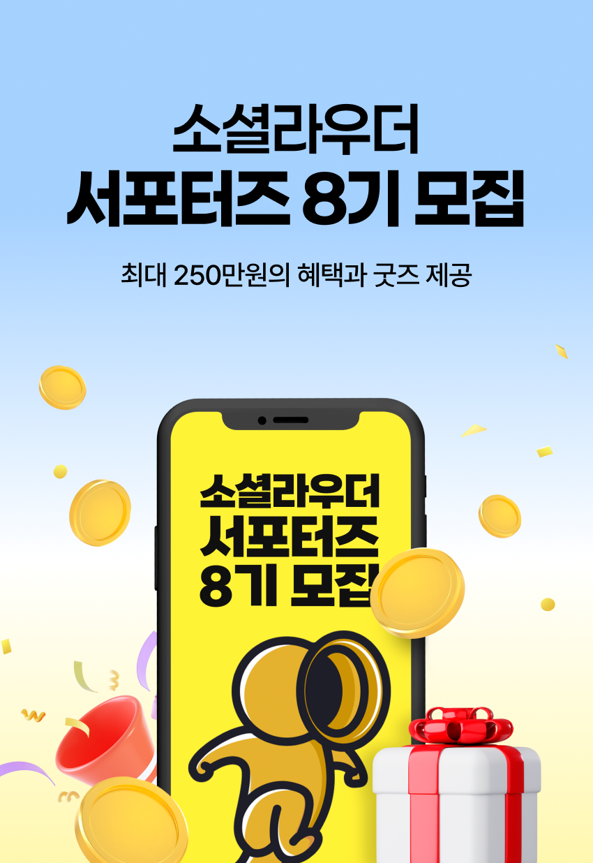 - 기존 소셜라우더 1~7기 서포터즈도 중복 지원 가능합니다.