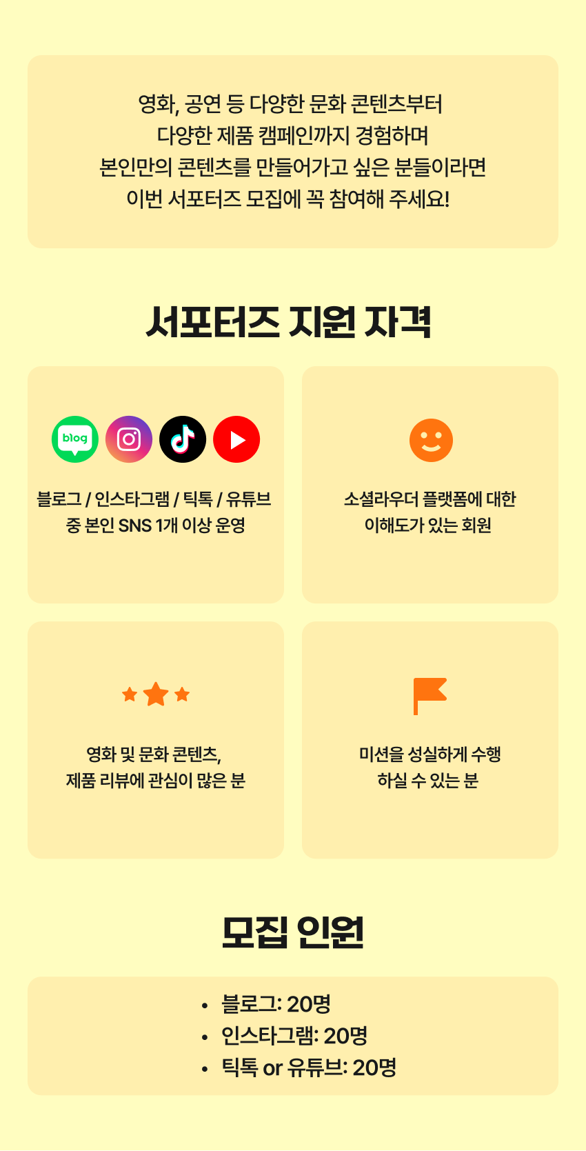 - 블로그 / 인스타그램 / 틱톡 / 유튜브 중 SNS 1개 이상 운영 중인 분